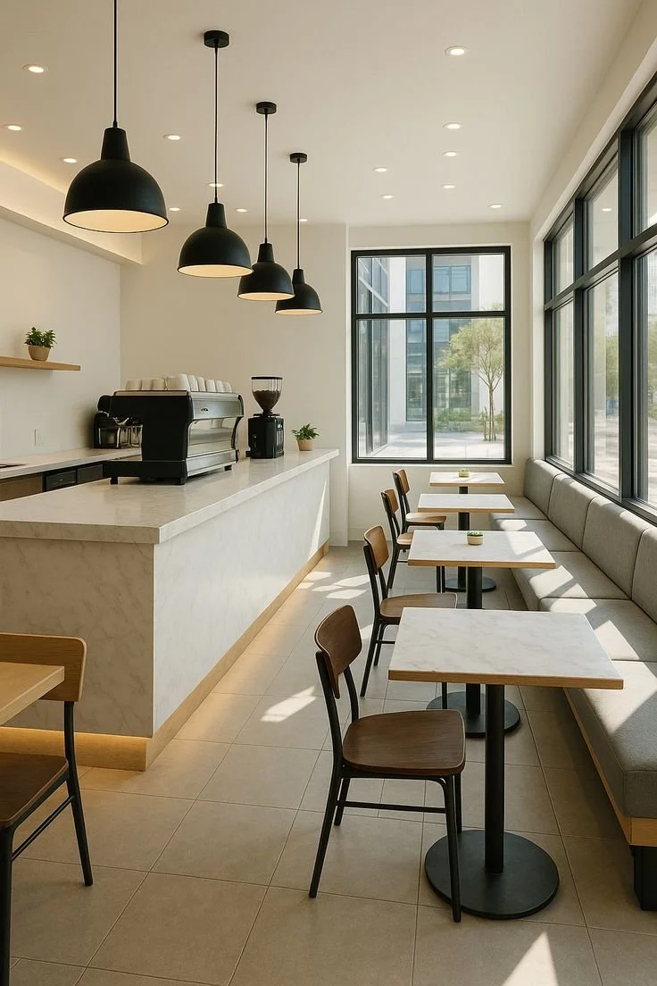 The interior direction focuses on openness, light, and order. Product display remains central, supported by structured shelving and controlled material use. The environment avoids visual clutter and instead prioritizes clarity, balance, and long term relevance.